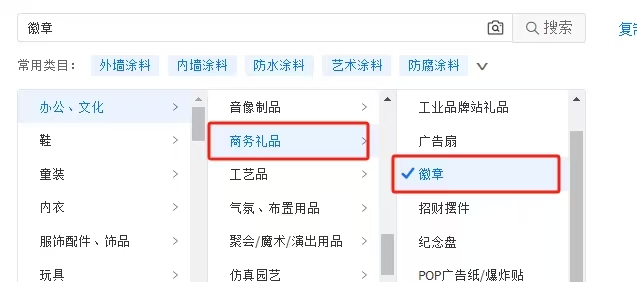 这位粉丝主要是做金属徽章的,他把产品选在:金属工艺品及账本、账册栏目。而正确的类目应该是选徽章。