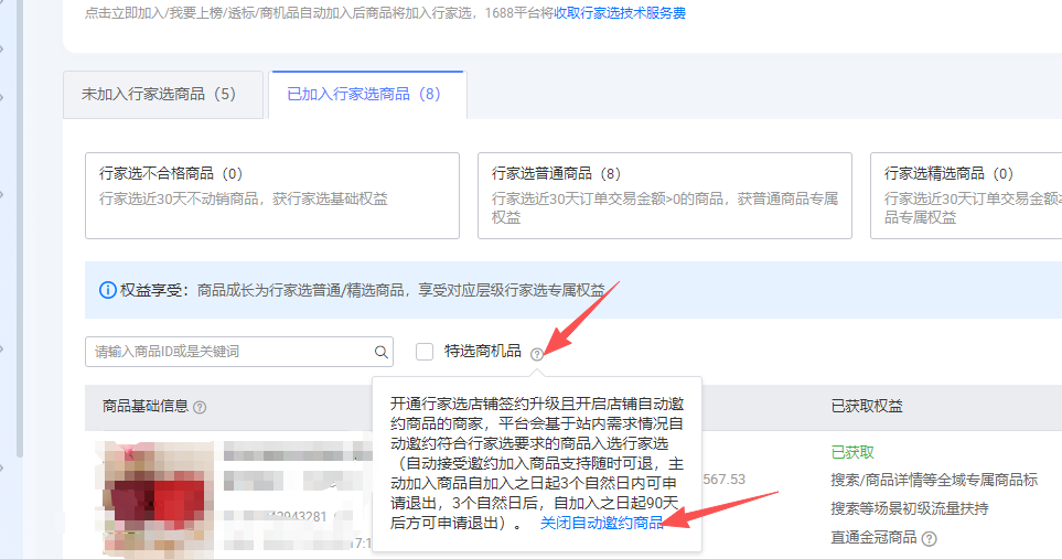 所以,正确操作是:在“行家选”已加入的商品里,找到“自动邀约”的选项,把它关掉!这样才算真的退出了。