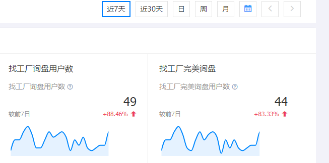 你看我们这个客户的店铺,找工厂询盘最近一直在直线上升,关键原因,就是他把找工厂名片质量分,从行业普通水平,硬是优化到了6.8分的高分!