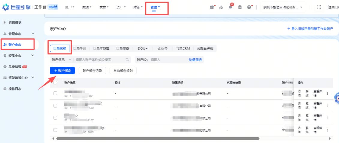 2.如果你有多个广告账号,也别担心广告计划会丢掉,直接在账号中心,添加绑定账号,即可访问你的老账号和里面的计划了。